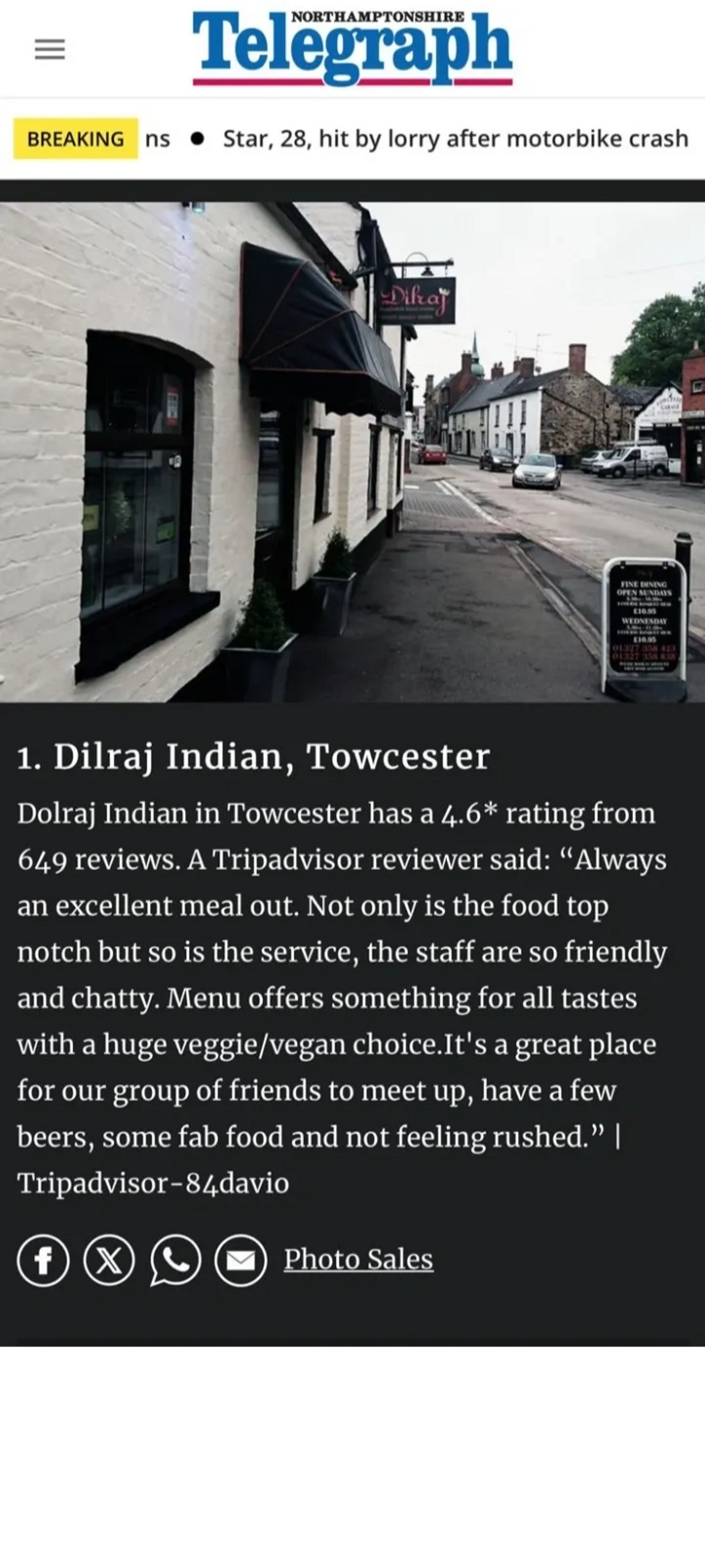 dilrajtowcester@gmail.com 01327 358423 01327 358838 Free car park at the rear of the restaurant.